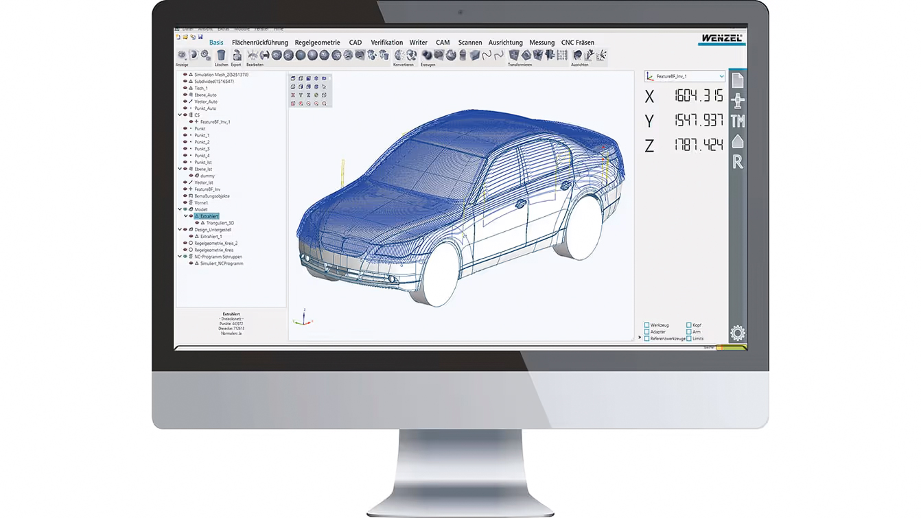 WM | DesignMaster 的基本要素是使用接触式、光学和多点扫描测头对工件和模型上的几何元素和表面进行数字化,并将这些数据无缝导入和导出到现代计算机辅助系统,如 CAD、CAM 或 CAQ。
